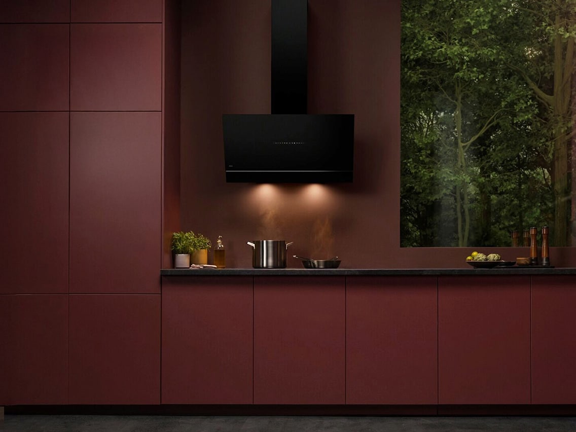 Væghængte emhætter fra AEG kombinerer kraftfuld ydelse med elegant design, som løfter køkkenets helehedsindtryk. Den markerede form og lodrette placering gør at emhætten bliver et naturligt blikfang – især i åbne køkkener hvor designet kan stå i centrum.