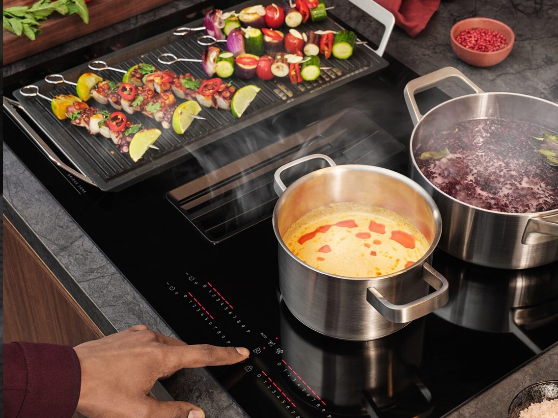 Skab et åbent og harmonisk køkken med kogepladen som midtpunkt – perfekt til åbne køkkener og køkkenøer. Vores induktionskogeplader med integreret emhætte kombinerer minimalistisk design med innovativ funktionalitet, og giver dig friheden til at placere kogepladen hvor den passer bedst.