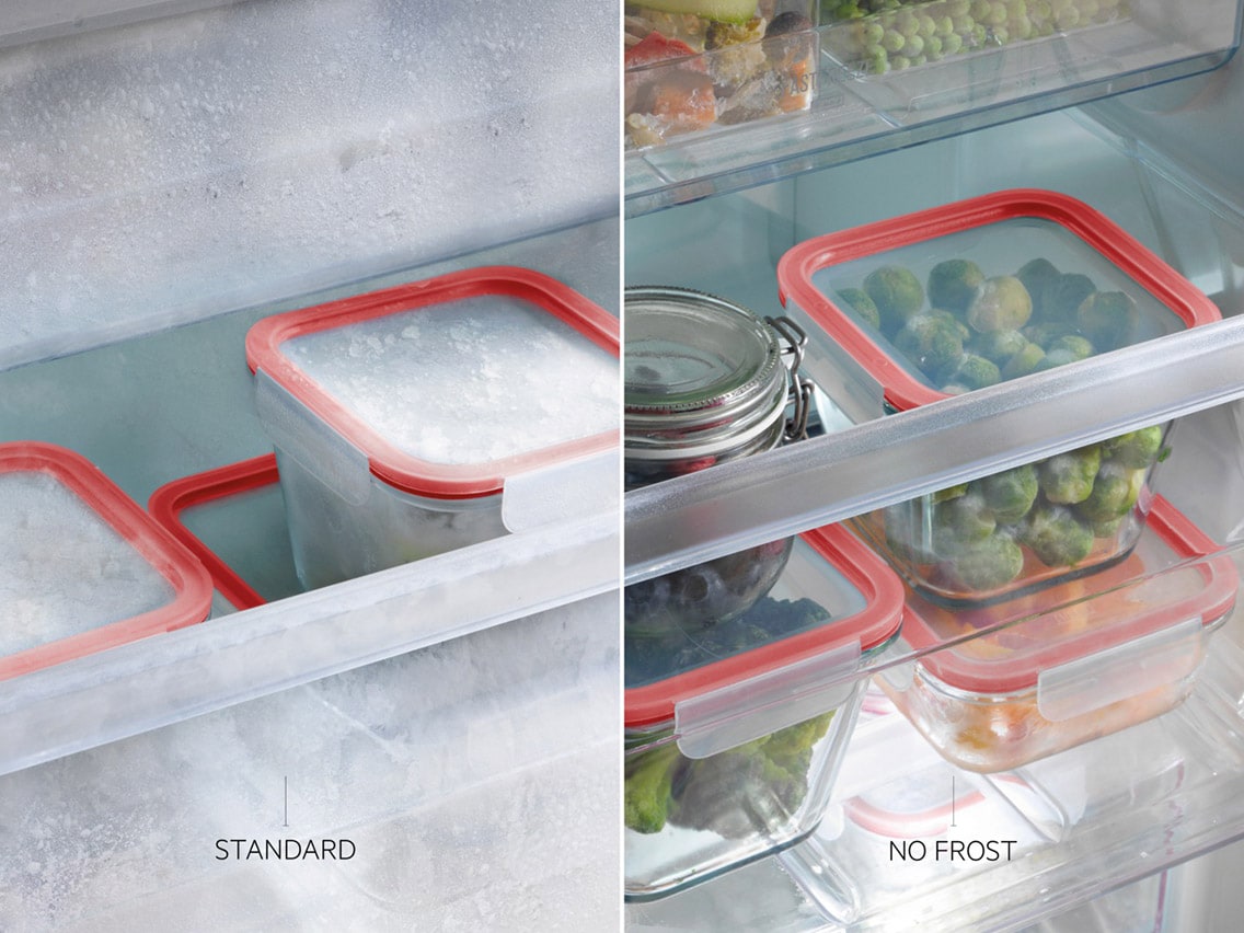 Med vores fryseskabe med NoFrost slipper du for at afrime fryseren, da der ikke dannes rim.