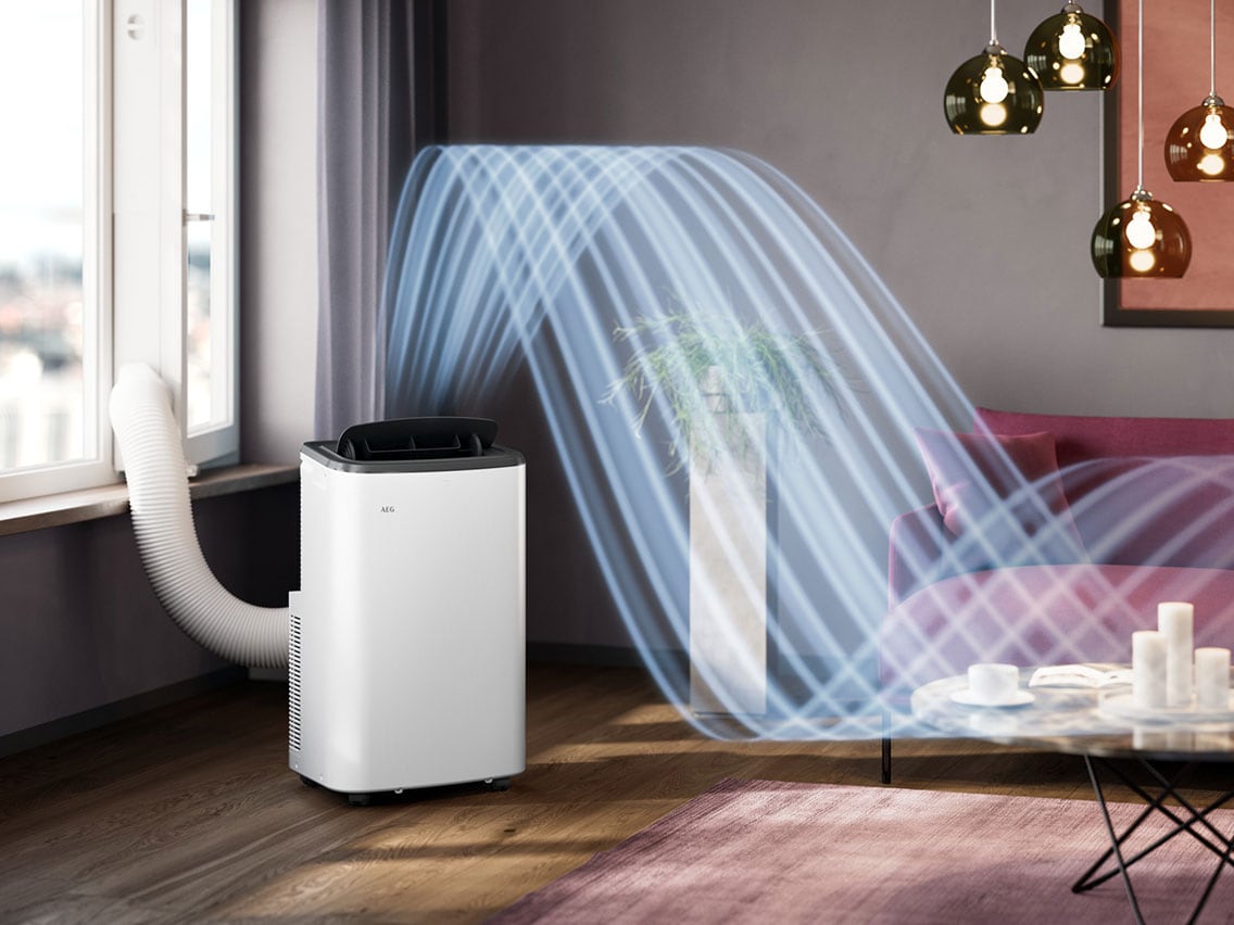 En transportabel aircondition er en mobil enhed, som køler luften indenfor ved at lede varm luft ud via et vindue eller en åbning:
